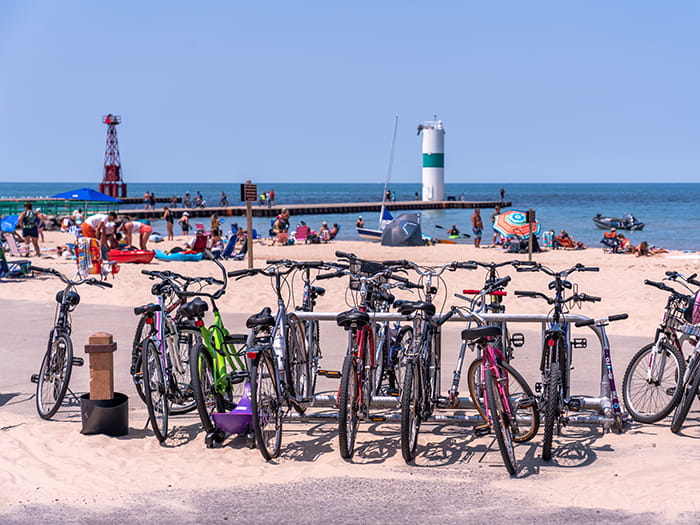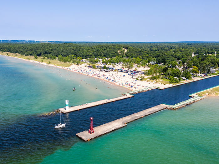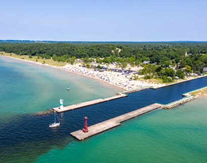 This very popular Lake Michigan beach attracts visitors of all ages. Facilities include a large beach and swimming area, picnic tables, children’s play area, and restrooms. There is also a State Park campground adjacent to the day-use beach.