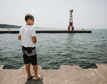 Visitors enjoy walking and fishing off the harbor pier which separates the beach park from the Pentwater Channel.