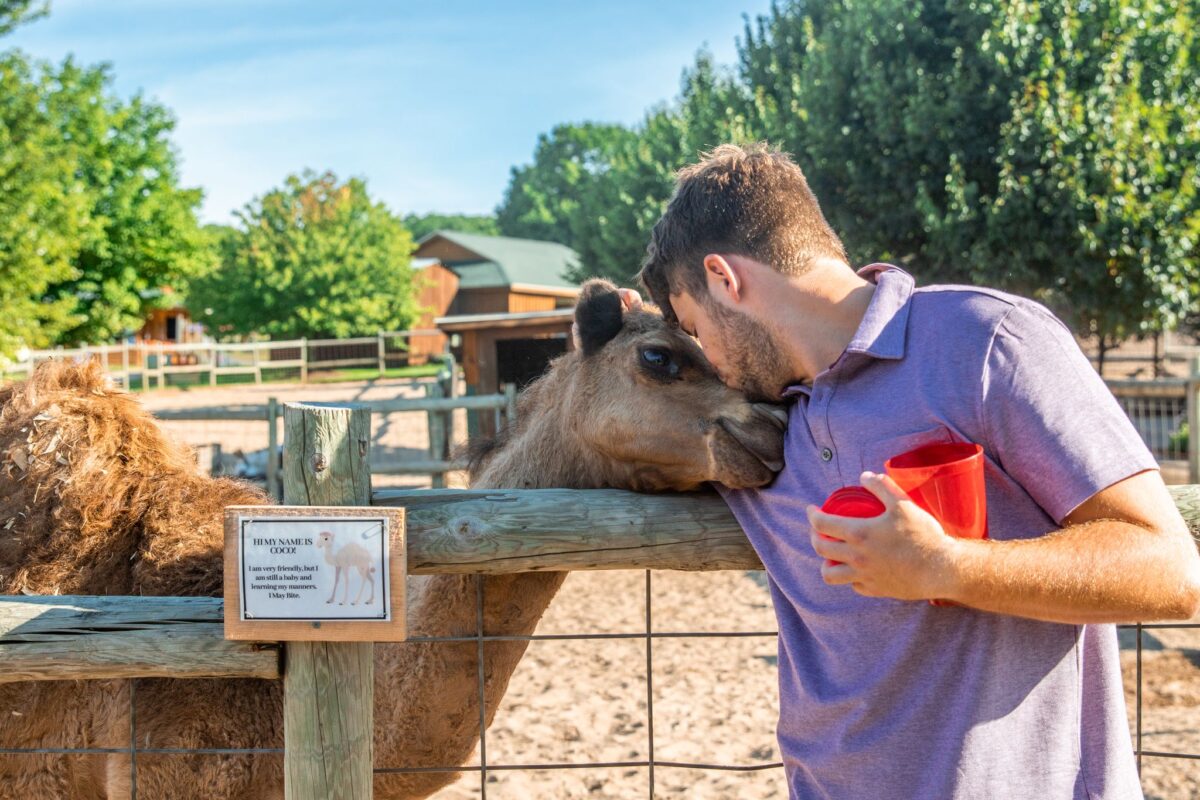 The Petting Zoo at Lewis Farms is home to a fantastic collection of unusual animals and birds! It’s squeaky clean and lots of fun for “kids” of all ages! Get up close and personal with over 35 species of animals. Visit with Jeffrey and Quiqley, our Arabian camels, laugh with the prairie dogs, and meet our friends the lemurs! Our animal encounters allow guests the chance to interact with rare and exotic animals like lemurs, kangaroos, and capybaras. In our Sloth Encounter, you will fall head over heels for Sid and Brooke, our two-toed sloths! You can even take a sloth selfie!