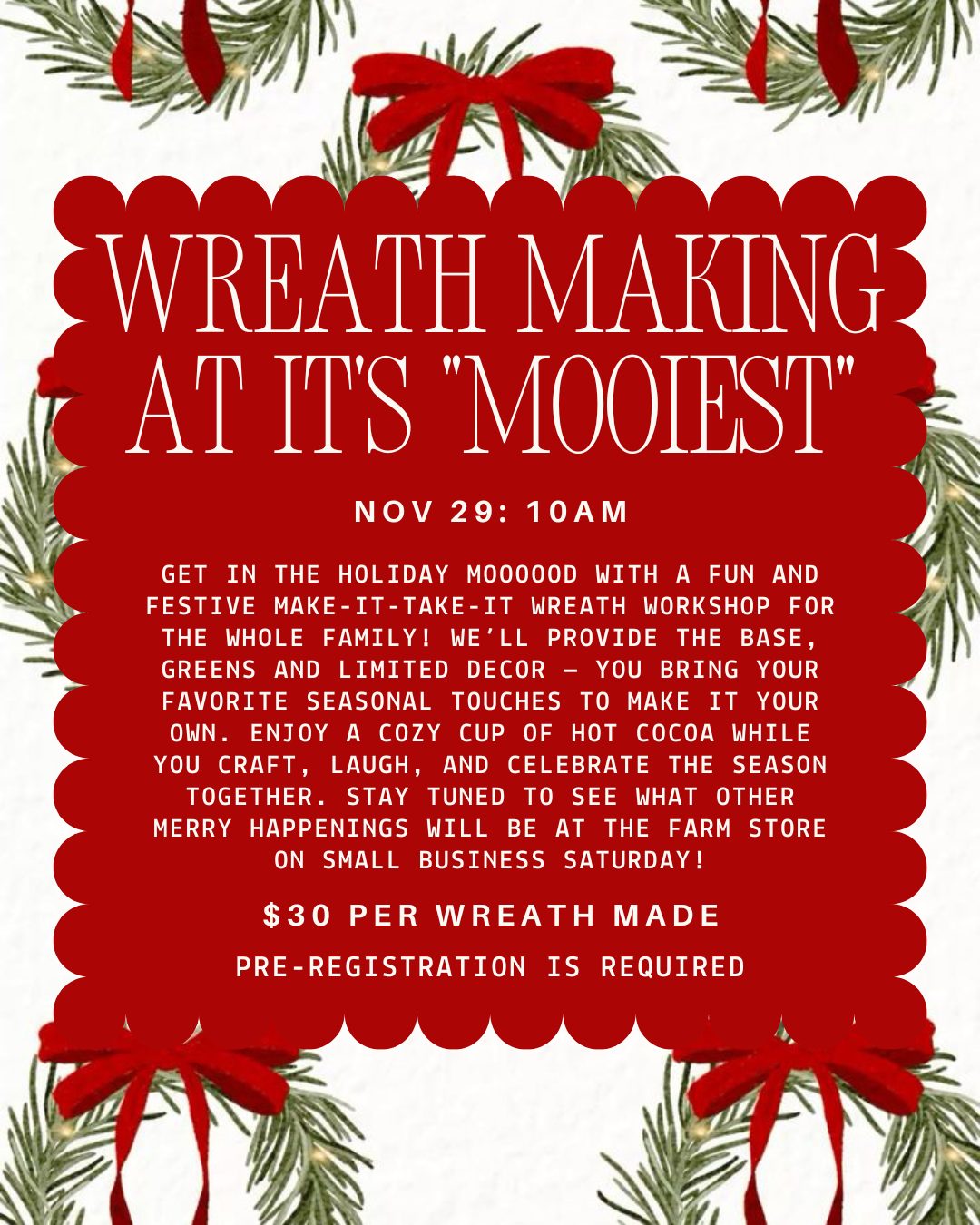 Country Dairy Inc. 3476 S 80th Ave., New Era, MI, United StatesKick off the holiday season on November 29 at 10 AM with a festive, family-friendly wreath workshop at Moo University! Create your own unique holiday wreath with provided bases, greens, and décor—just bring your favorite personal touches to make it […]
