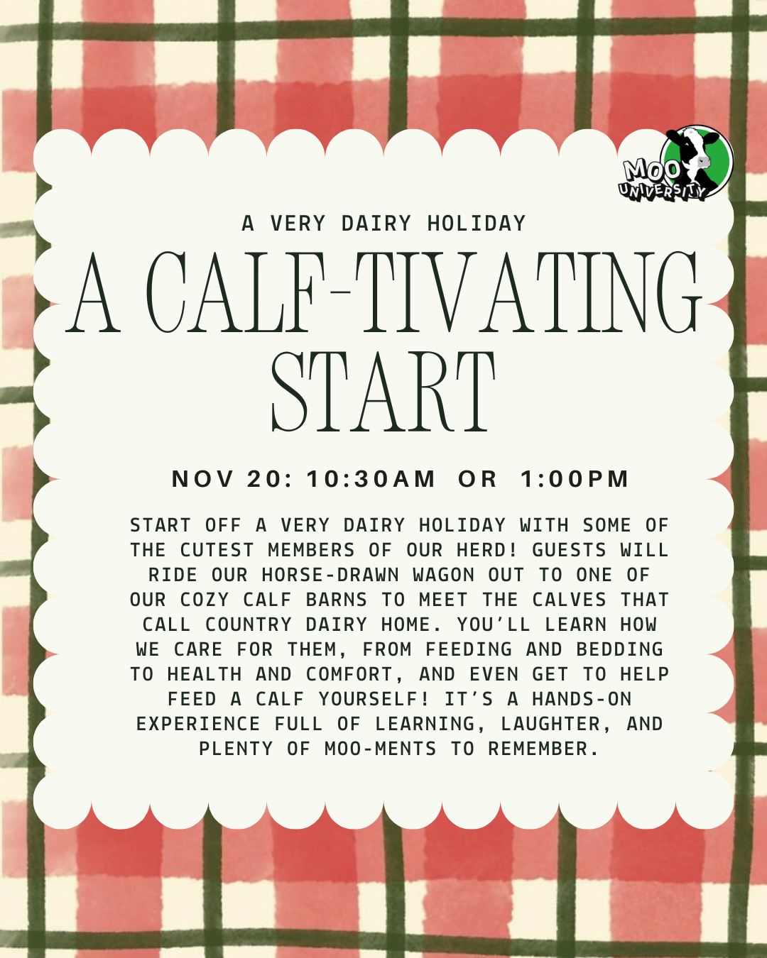Country Dairy Inc. 3476 S 80th Ave., New Era, MI, United StatesJoin us at Moo University for A Very Dairy Holiday on December 11 with sessions at 10:30 AM or 1:00 PM! Learn the art of butter-making in this fun, hands-on experience where guests will churn their own butter, add flavorful […]